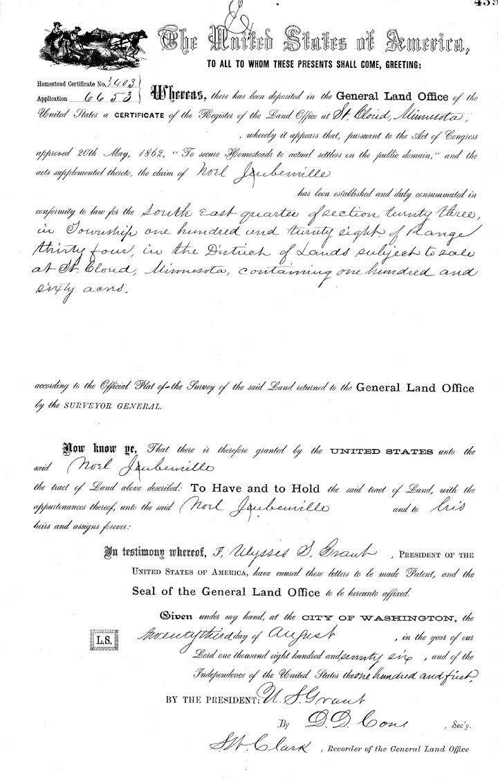 "My great great grandfather is Noel Jubenville, who, by family accounts, came from Strasbourg, Alsace Lorraine. He migrated from France to Quebec about 1855-60, and then continued to Minnesota about 1868."
